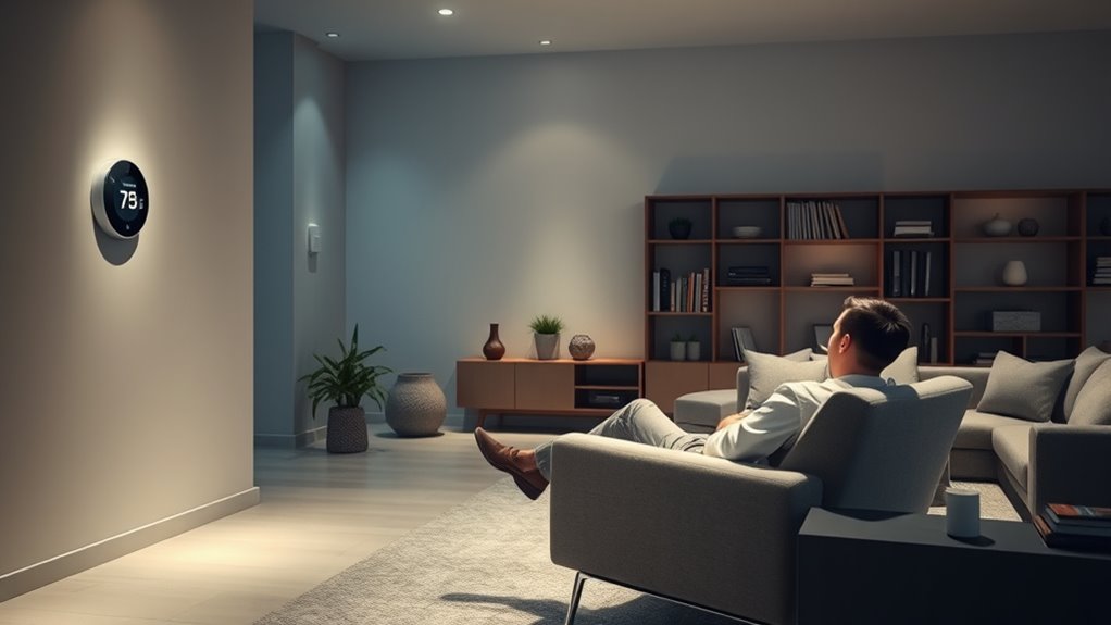 Ambient computing involves technology quietly working in the background to anticipate your needs and make your life easier. It creates a seamless environment where devices like smart home systems and wearable tech communicate effortlessly, adjusting settings automatically based on your habits and preferences. This proactive, invisible assist creates safer, more efficient spaces that adapt to you without intrusions. Keep exploring to discover how this innovative approach transforms everyday living into a smarter, more connected experience.