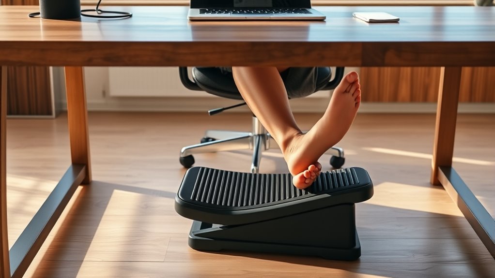 If you’re looking to boost comfort and improve posture at your desk, I recommend exploring the 15 best adjustable under-desk footrests. These options feature customizable heights, tilt angles, and textured surfaces that promote circulation, reduce fatigue, and support ergonomic positioning. Many are made from durable materials and designed for portability, making them perfect for any workspace. Keep going, and you’ll discover which footrest could be the game-changer for your daily comfort.