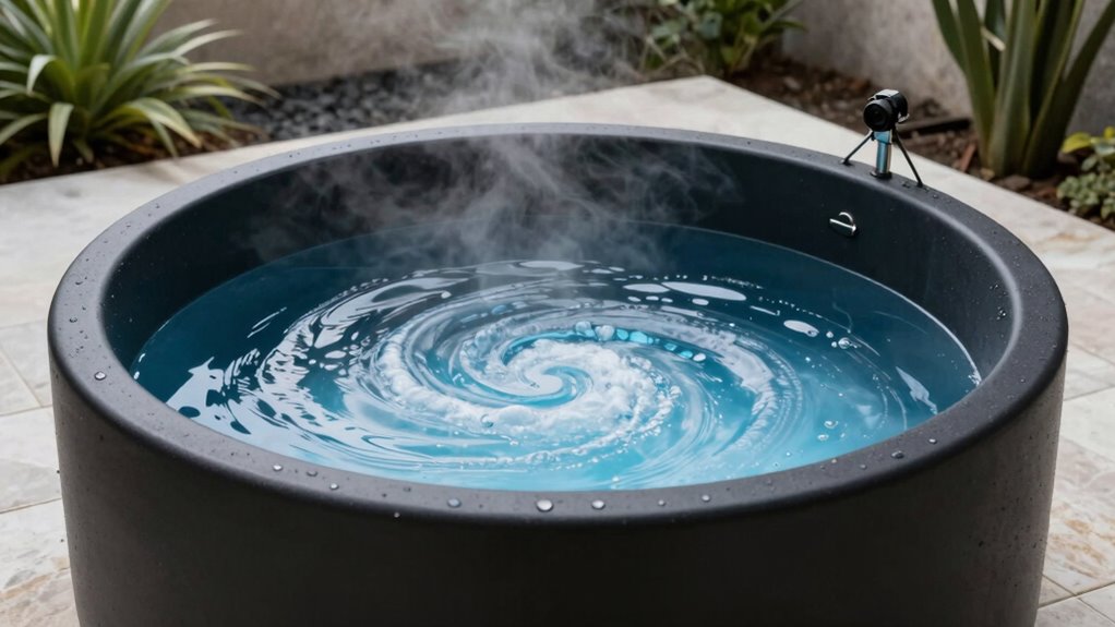 Effective insulation is essential for maintaining cold water temperatures in plunge tubs, especially if you plan to use them frequently. Good insulation minimizes heat transfer and prevents the water from warming up too quickly, reducing the need for constant re-chilling. Multi-layer systems, combining foam, reflective materials, and waterproof barriers, are particularly effective at conserving cold. The thickness and quality of insulation directly influence how well a tub retains its low temperatures, with thicker, higher-quality materials offering better performance. Many well-insulated tubs also come with covers or lids that further prevent heat exchange and save energy. When choosing a cold plunge tub, prioritize insulation features to assure your water stays cold longer, maximizing the therapeutic benefits and making your investment more efficient.