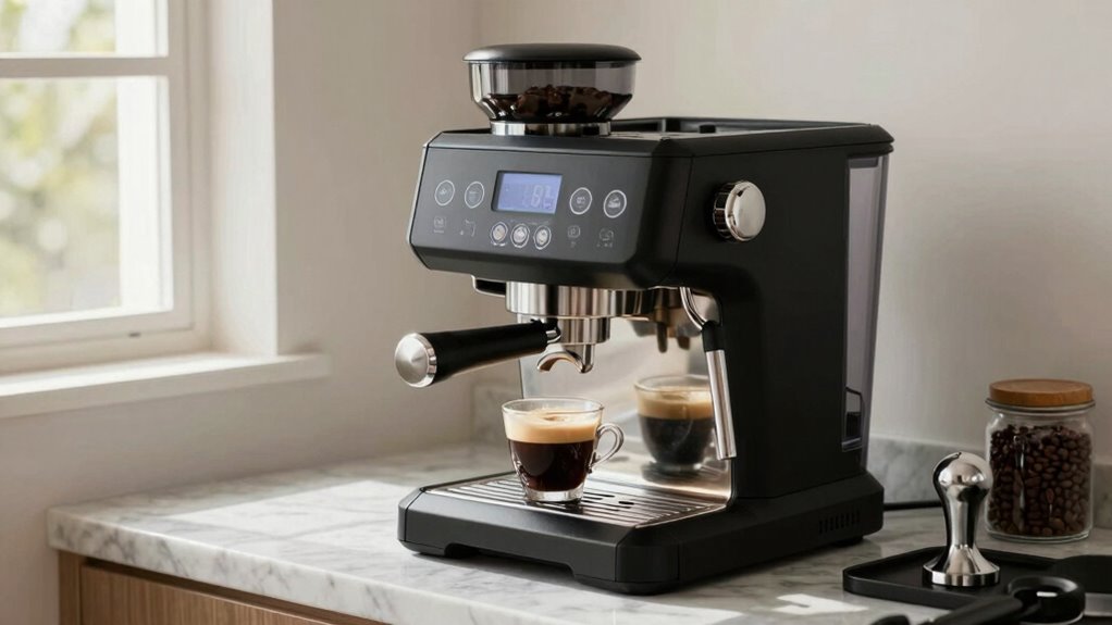 Sure, they do need a bit of tender loving care. I recommend regular cleaning routines—descaling the machine and cleaning the grinder to keep everything running smoothly. Wiping down the exterior and removing coffee grounds prevents buildup and guarantees your espresso tastes fresh. Think of it as giving your machine a little spa day; it’ll reward you with consistently great coffee and a longer lifespan.