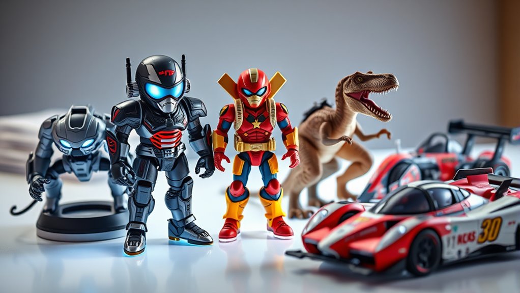 If you’re looking for the best hot toys of 2025 to excite 7-year-old boys, I suggest some fantastic options that blend active play with imaginative fun. From remote control cars that flip and perform stunts to LED baseballs and punching bags, these toys promote creativity, physical activity, and coordination. Each one is designed with durability and safety in mind. Keep exploring to discover the top picks that will spark their imagination and keep them engaged for hours.