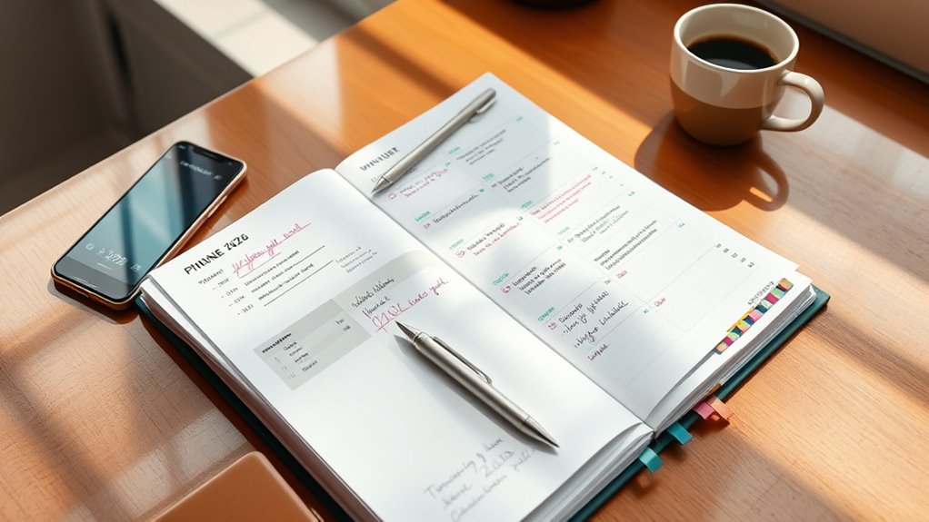 Your choice of style and personalization options can turn a basic planner into a reflection of your personality and preferences. Selecting a cover design or color that resonates with you can boost motivation and make planning more enjoyable. Personalization features, like customizable covers or monogramming, add a unique touch that makes your planner feel special. Incorporate decorative elements such as motivational quotes, artistic covers, or themed illustrations to align with your personality. The layout style—whether minimalist, floral, or bold—should match your aesthetic to encourage consistent use. Additionally, look for planners with adjustable or removable covers, tabs, or add-ons, giving you flexibility to express your individual taste throughout the year. Finding a style that reflects you ensures your planner becomes an inspiring tool rather than just a necessity.