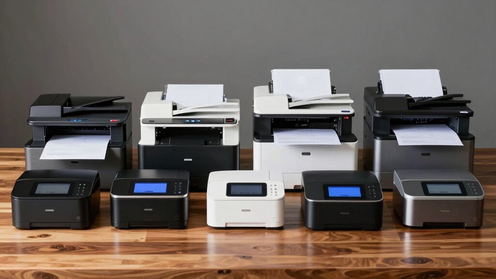 Cost and maintenance are key factors that can greatly impact your overall expenses when selecting a shipping label printer. The initial cost varies widely, with basic models starting around $50, while more advanced ones can exceed $300. Maintenance costs tend to be low for thermal printers since they don’t need ink or toner, but you should consider the price of thermal labels, which range from $15 to $40 per roll. Some printers include limited warranties or support, reducing potential repair costs over time. Regular cleaning and proper handling are essential to keep the printer running smoothly and avoid costly repairs. Investing in a high-speed printer can boost efficiency, helping you save time and operational costs in the long run.