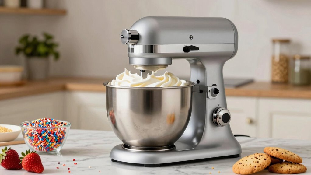 Ever wondered what makes a stand mixer last through countless batches? It all comes down to build quality and durability. Top models are built with high-quality metals like stainless steel or die-cast aluminum, ensuring they withstand frequent use and heavy ingredients. A sturdy frame with reinforced joints adds extra resilience, preventing wobbling or breakage over time. Look for features like heat dissipation systems and overload protection—that’s key to prolonging motor life. Corrosion-resistant components in the bowl, attachments, and control knobs are also essential, especially if you plan to use your mixer regularly. Finally, pay attention to overall build precision—tight-fitting parts and solid attachment connections help prevent wear and tear, keeping your mixer performing like new for years.