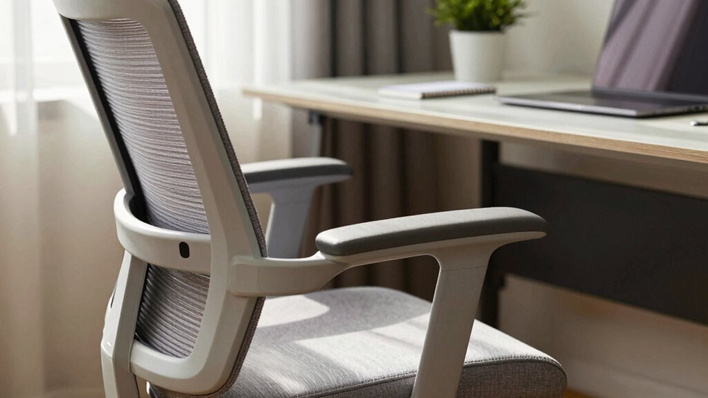 Adjustable ergonomic features are essential for staying comfortable and supported throughout the workday. Properly adjusting your chair’s features provides ergonomic benefits like reducing strain and enhancing posture. To keep your setup comfortable, focus on these key adjustments: