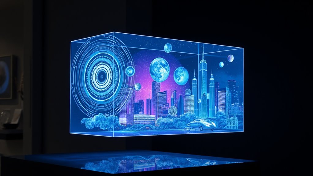 Imagine a world where you can see 3D images floating effortlessly before your eyes, no glasses needed. Holographic displays are transforming how you interact with digital content, making experiences more immersive and lifelike. As this technology advances, isn’t it exciting to think about the endless possibilities it could unveil in entertainment, education, and communication? The future of visual interaction is clear—holography is poised to change everything, and you’re right at the forefront of it.