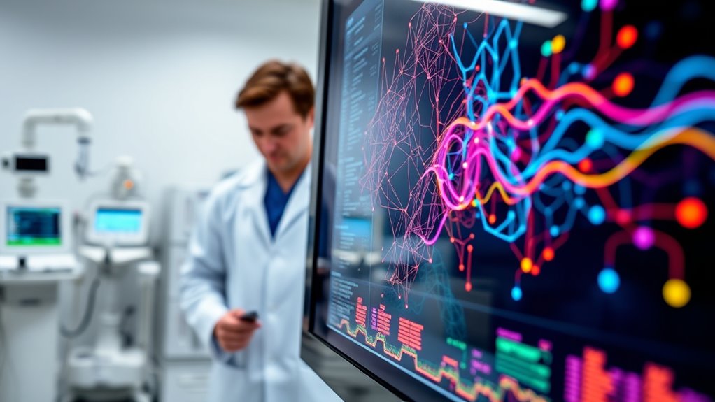 Machine learning improves diagnostic accuracy by analyzing vast amounts of data quickly and identifying patterns that humans might miss. You’ll find it helps in detecting diseases early by recognizing subtle changes in imaging or lab results. It also reduces human error, ensuring more consistent results. By integrating these algorithms into diagnostic processes, you’re likely to see faster, more reliable outcomes, leading to better treatment decisions and ultimately enhancing patient care.