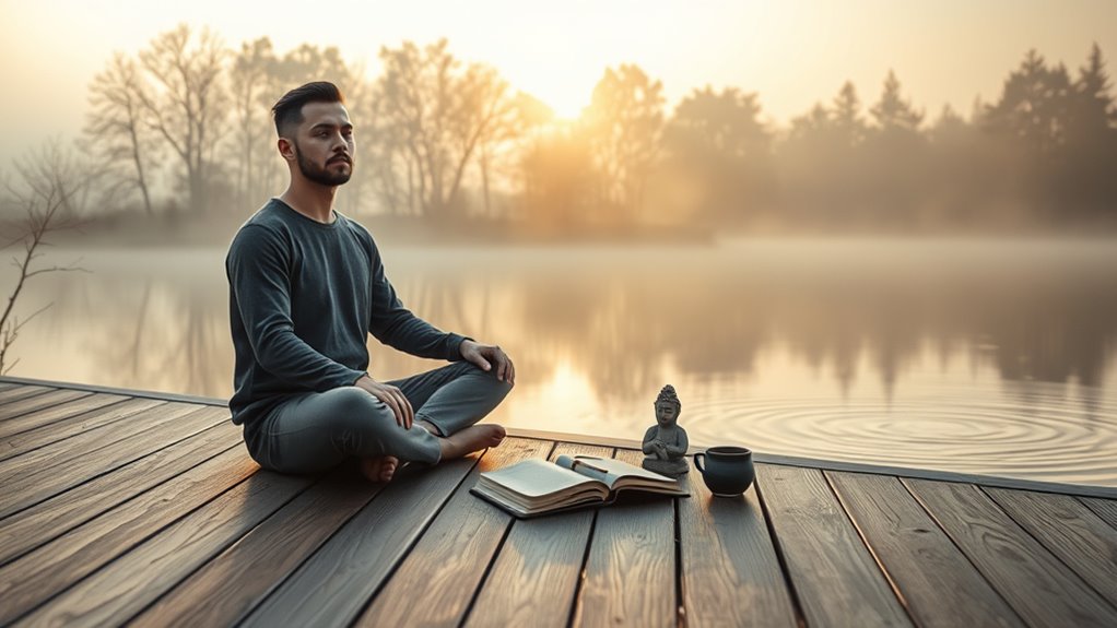 In today’s chaos, practicing daily Stoic techniques like mindful reflection, journaling, and meditation helps you stay calm and focused. By pausing to assess your thoughts and emotions without judgment, you can respond thoughtfully instead of reacting impulsively. Consistently applying these methods builds emotional resilience, enabling you to navigate stress more effectively. To discover practical steps that can stabilize your mind amid modern turbulence, keep exploring these empowering routines.