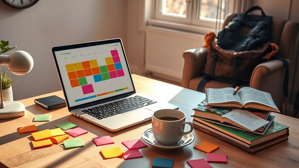 Balancing work and study requires effective time management. Start by setting priorities; identify urgent tasks and use planners to stay on track. Create realistic schedules that include study blocks and breaks to prevent burnout. Minimize distractions by finding quiet spaces and turning off phone notifications. Don’t hesitate to say no to commitments that conflict with your priorities. Regularly reflect on your progress and adjust your plans as necessary to optimize your efficiency. Discover more tips to enhance your time management skills.