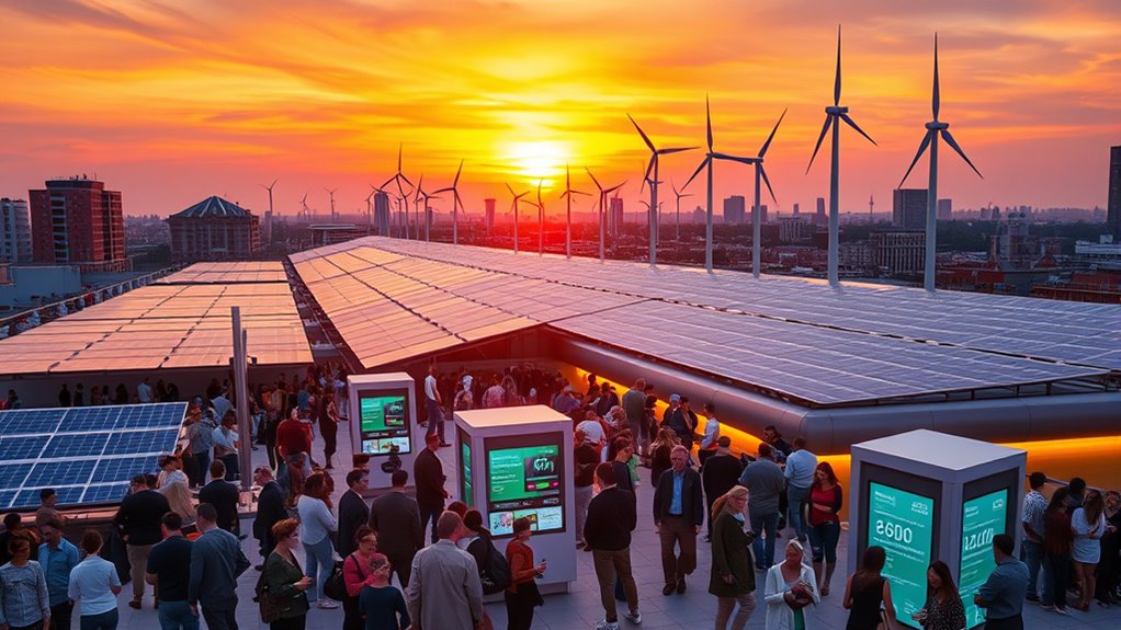 Virtual power plants (VPPs) combine many small energy sources like solar panels, wind turbines, and batteries, effectively crowdsourcing electricity supply. They coordinate these distributed resources through smart algorithms and real-time data, allowing you to respond quickly to supply and demand changes. This makes the grid more flexible, stable, and efficient, reducing reliance on fossil fuels. If you keep exploring, you’ll discover how VPPs can revolutionize the future of energy management and sustainability.
